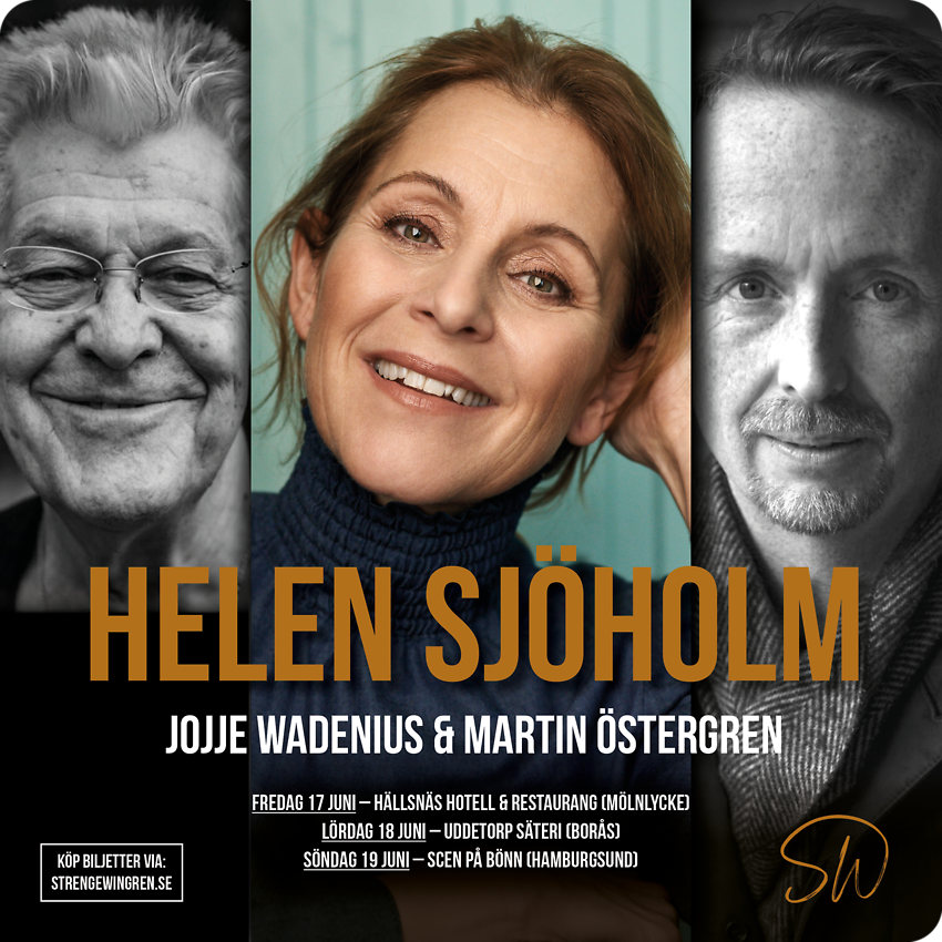 Vi har den glädjande nyheten att Helen Sjöholm, Jojje Wadenius och Martin Östergren kommer besöka Hällsnäs Hotell & Restaurang, Uddetorp Säteri och Scen på Bönn under en helg i juni månad.